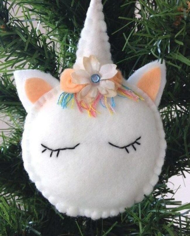 Soft white felt brings magical charm to your holiday decor with an adorable unicorn ornament that whispers sweet enchantment.