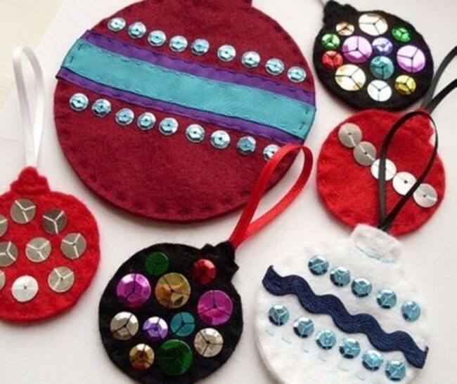 Sequin-studded felt ornaments catch light in magical ways, updating ordinary spaces into festive wonderlands that draw your eye instantly.