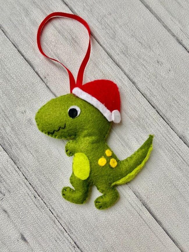 Little green dinosaurs wearing Santa hats bring unexpected magic to holiday decorations, capturing hearts with their quirky charm.