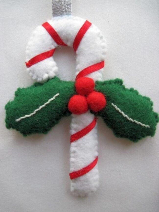 Deck out your holiday space with a charming felt candy cane ornament that screams festive cheer.