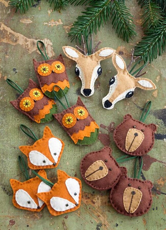 Festive felt ornaments spark joy with their whimsical woodland charm and intricate handcrafted details.