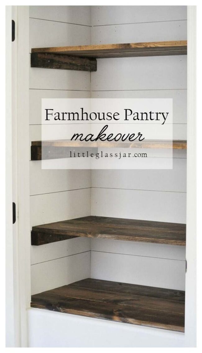 Country pantry shiplap shelves elevate kitchen design with rustic charm and farmhouse appeal.