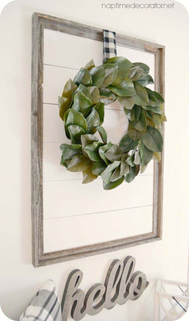 Handcrafted wood planks with distressed edges provide a captivating backdrop for a carefully selected wreath, instantly transforming a simple wall into a charming design statement.
