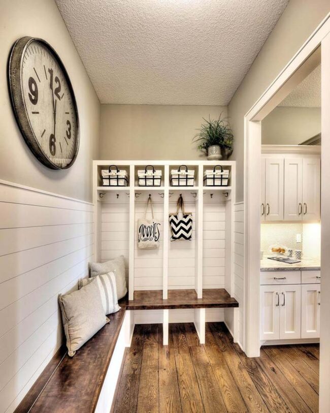 Shiplap accent walls bring rustic elegance to entryways, creating an instant visual impact with their horizontal lines that magically expand small spaces.