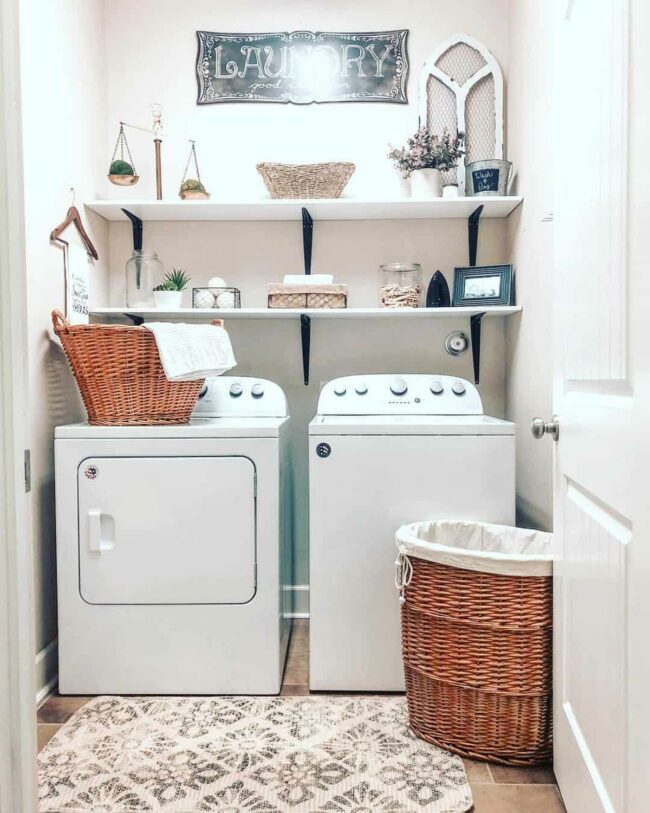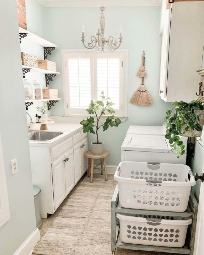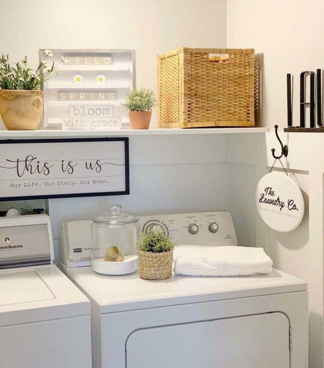Small decorative touches elevate the entire laundry experience from boring to beautiful.