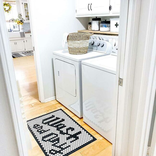 Tile floors get an instant upgrade with a welcoming mat that adds warmth and texture to the room.