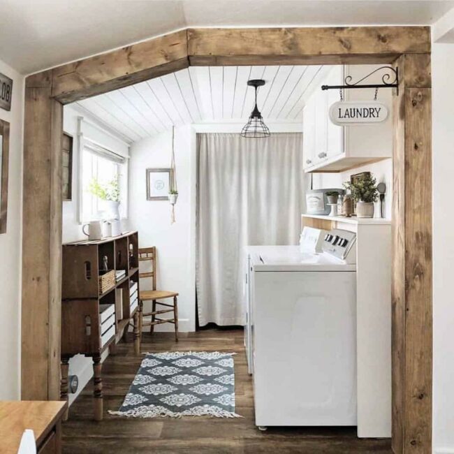 Rustic laundry spaces radiate charm through carefully curated details that blend practicality with aesthetic appeal.