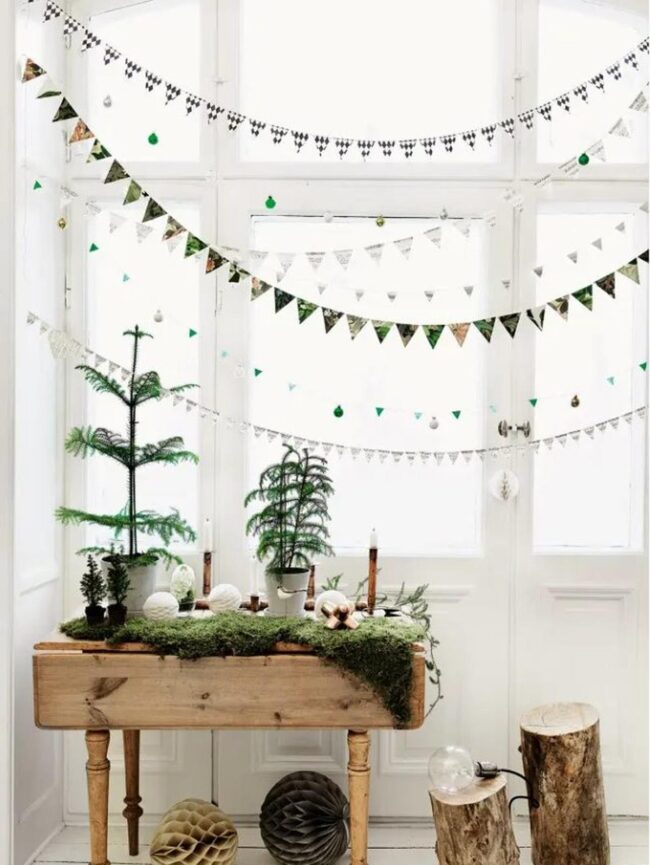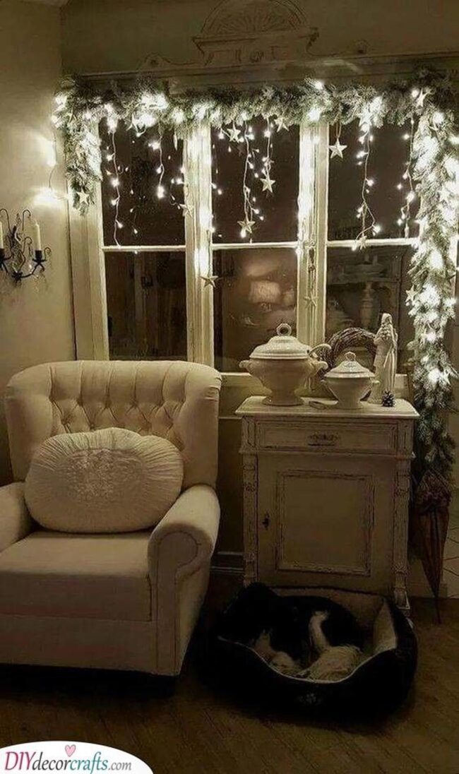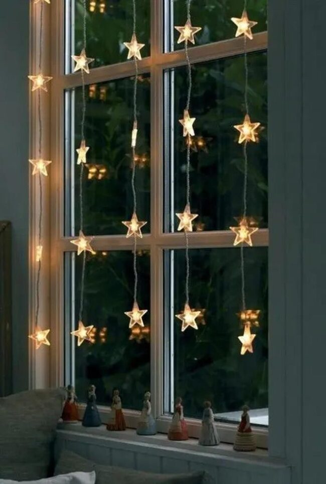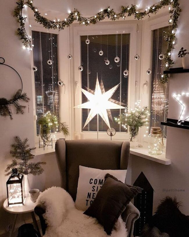 Festive garlands and glimmering ornaments stretch across window frames, inviting warmth and imagination into your personal space.