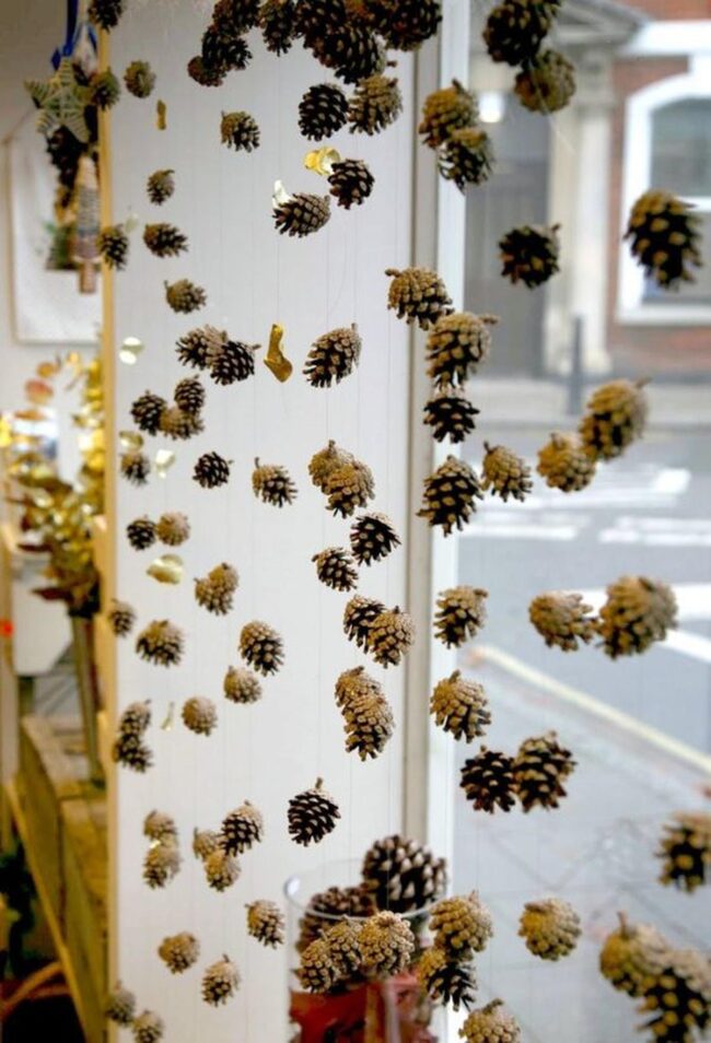 Simple materials like pinecones, ribbons, and candles combine beautifully to produce stunning visual effects without requiring expensive purchases.