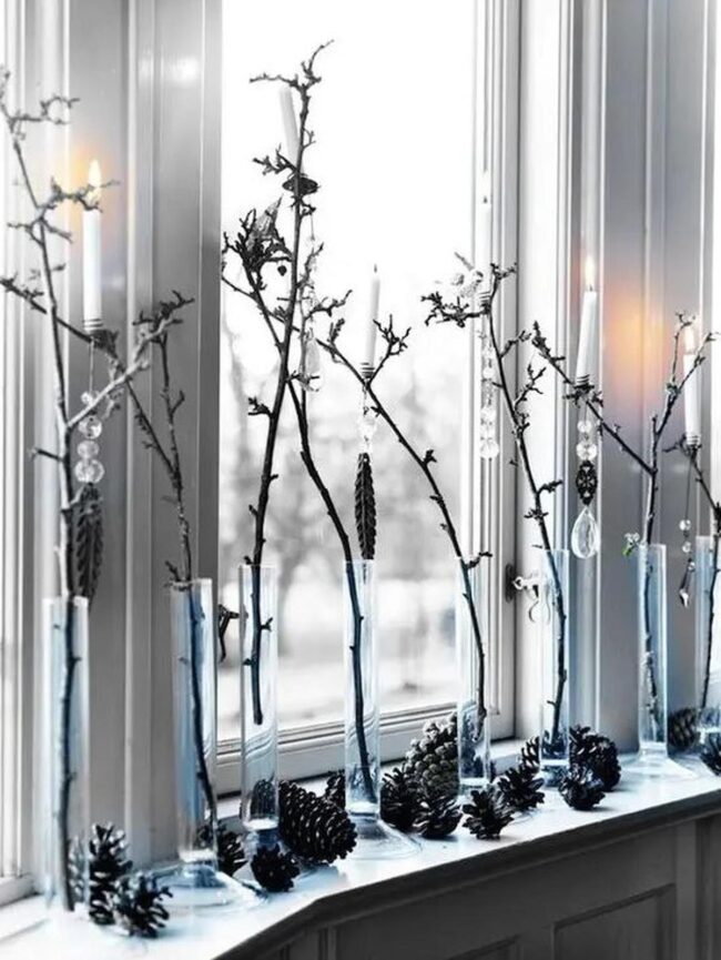 Such simple compositions remind you how small design elements can completely elevate your living space, turning ordinary windows into breathtaking visual experiences that celebrate seasonal beauty.