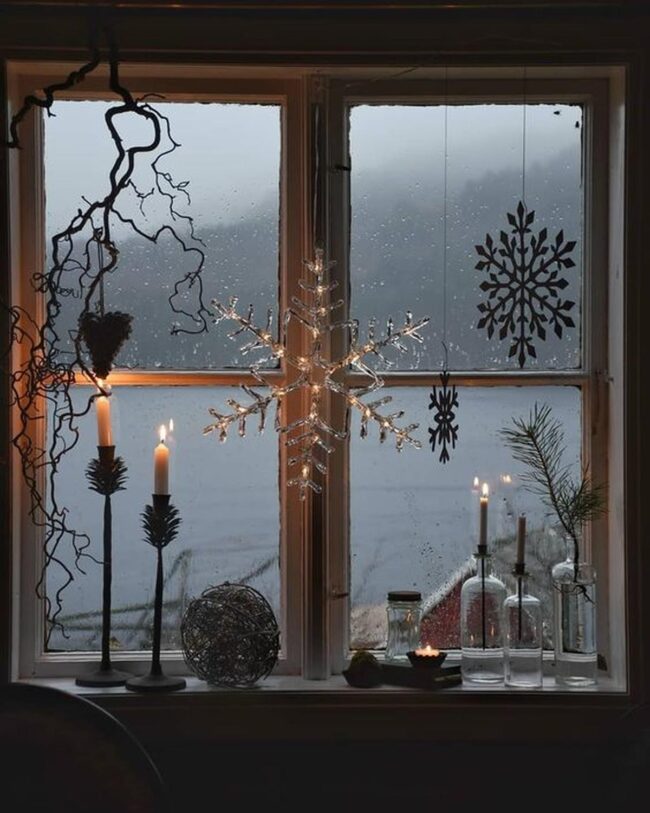 From minimalist arrangements that emphasize symmetry to abundant traditional displays filled with texture, the right decorations make glass panes come alive with warmth and celebration.