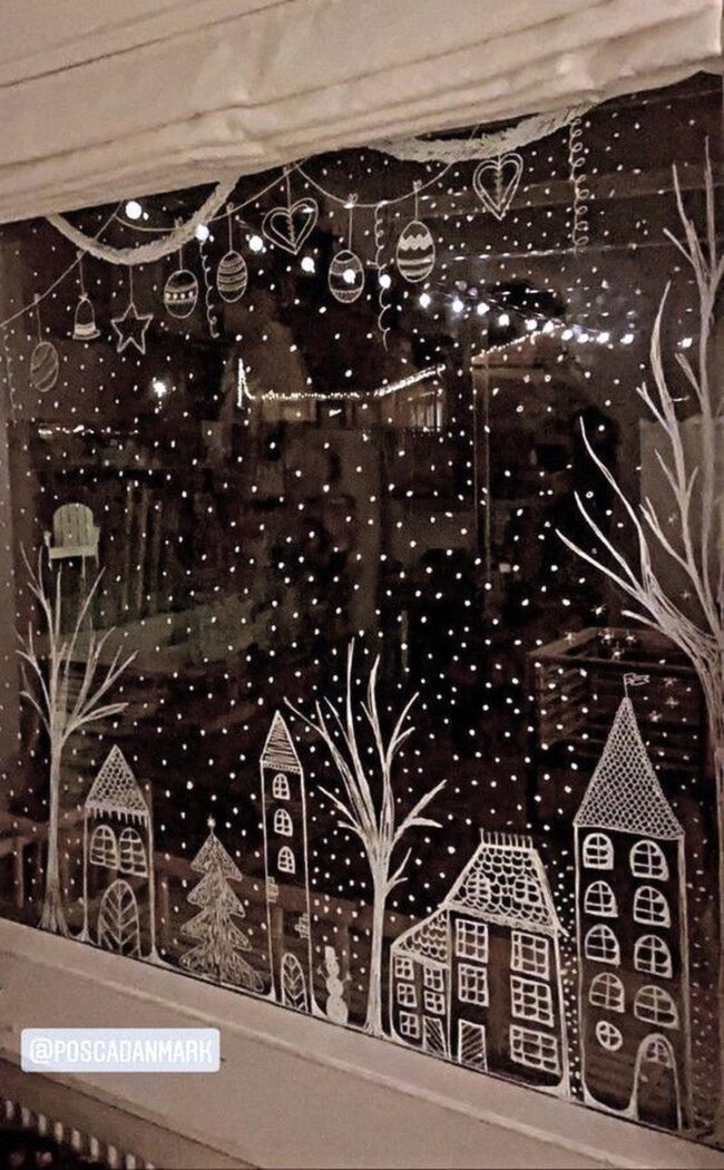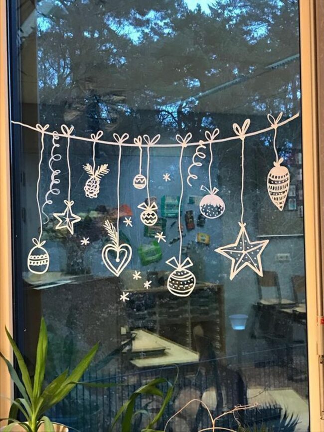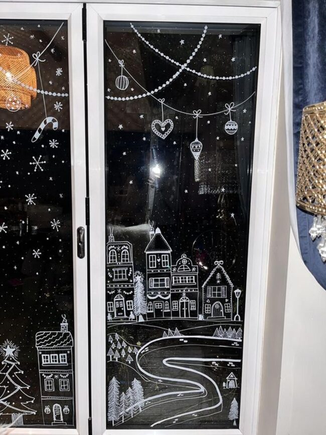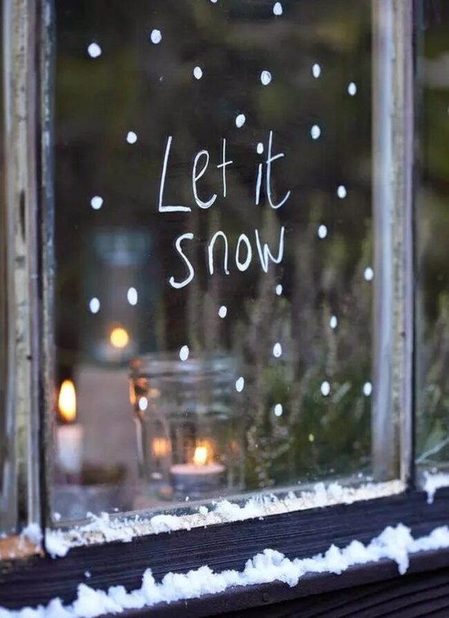 Handwritten messages like "Let it snow" add charming personal touches that make each window feel uniquely special and heartwarming.