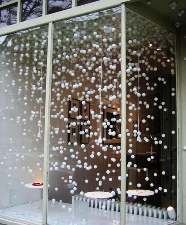 Winter window displays capture your heart with sparkling white decorations that instantly mesmerize.
