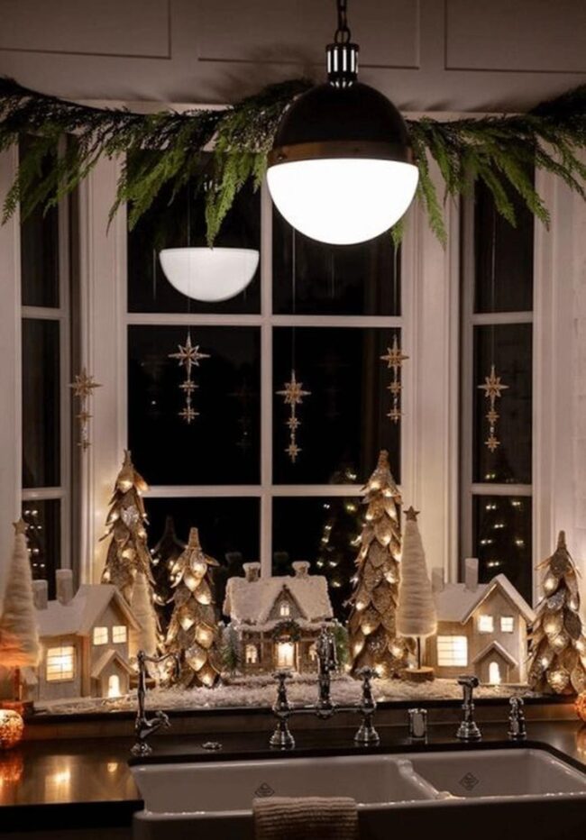 Soft illumination bathes everything in gentle radiance, highlighting each carefully chosen piece and making your window feel like a magical holiday portal that welcomes everyone who passes by.