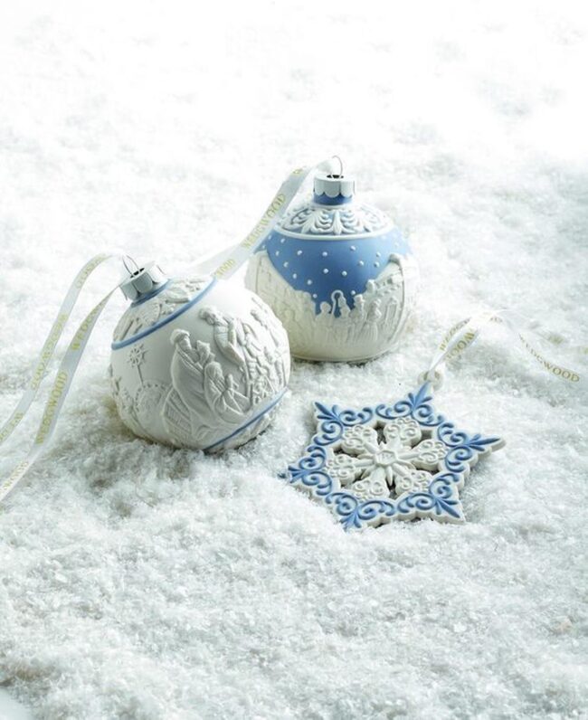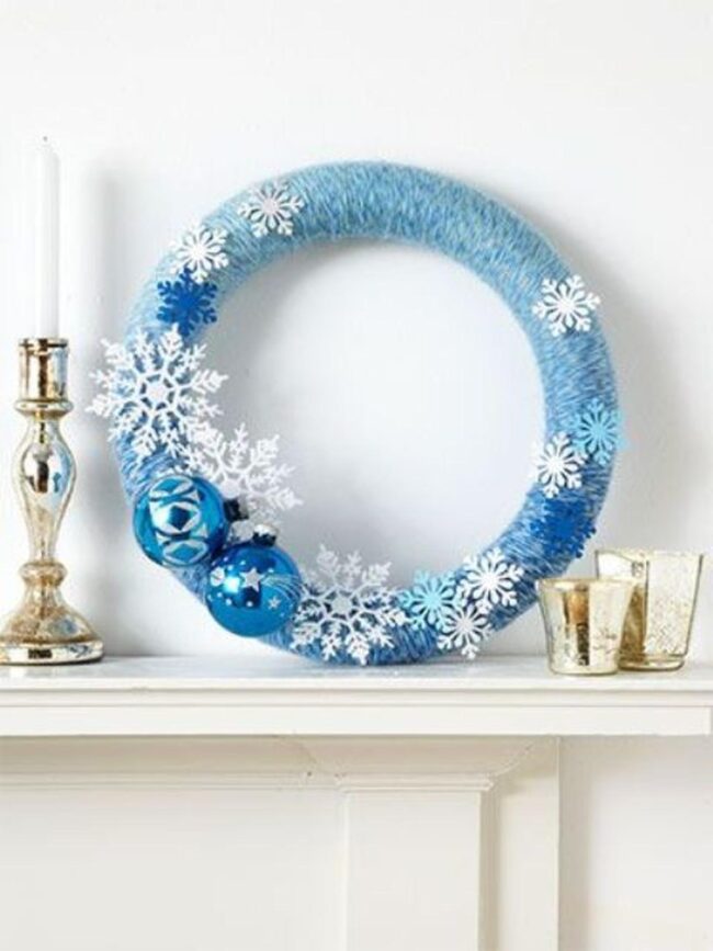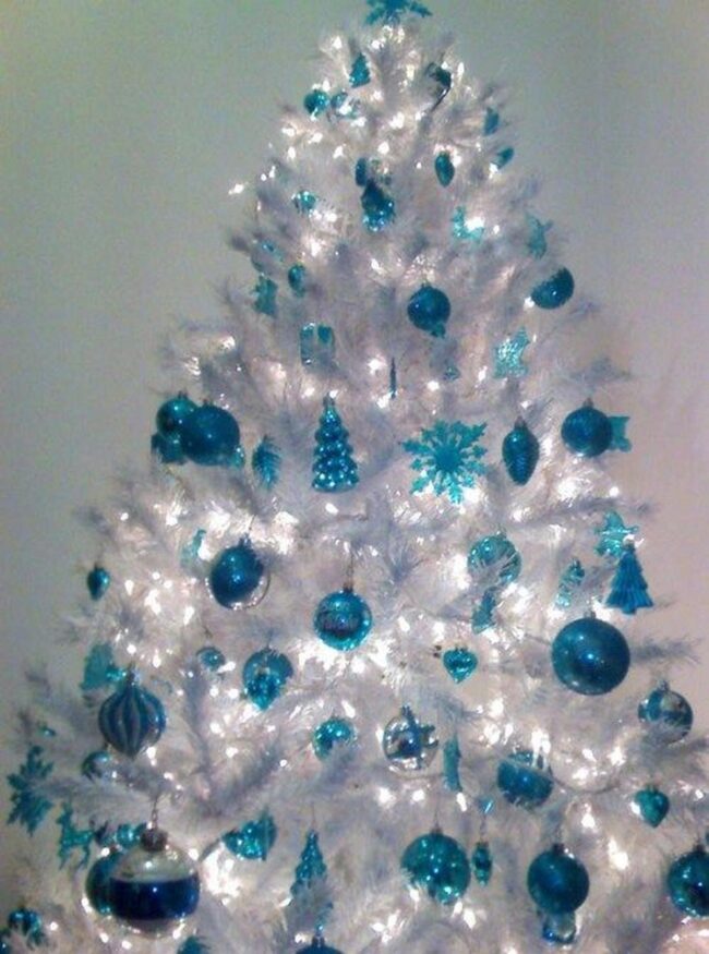 Cool blue and pristine white tones blend seamlessly, breaking away from traditional holiday color schemes while maintaining festive cheer.