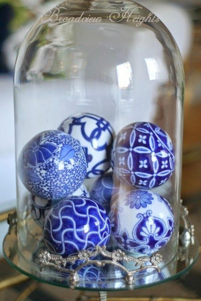 Brilliant blue and white patterns dance across delicate glass-encased orbs, catching sunlight and creating mesmerizing visual displays that draw every eye.
