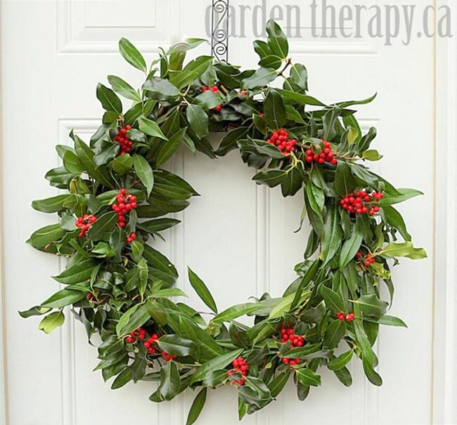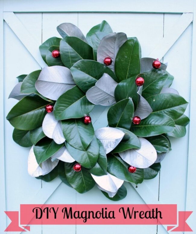 Magnolia leaf wreaths burst with seasonal magic, drawing eyes instantly with their rich green canvas sprinkled with cheerful red ornaments.