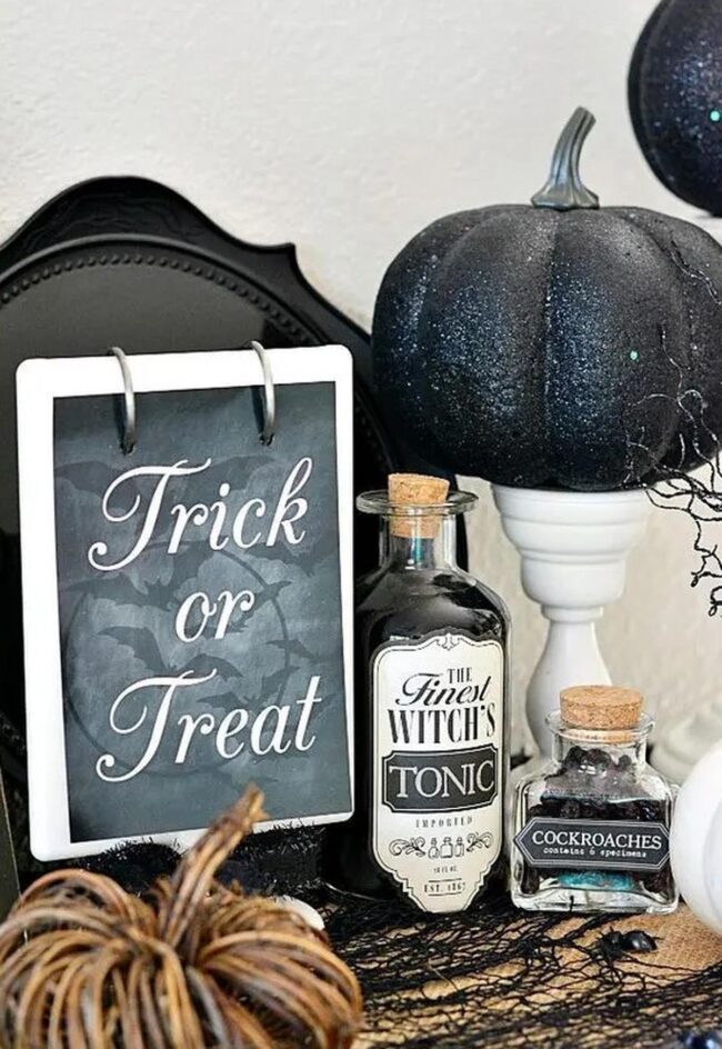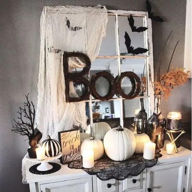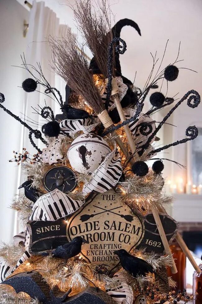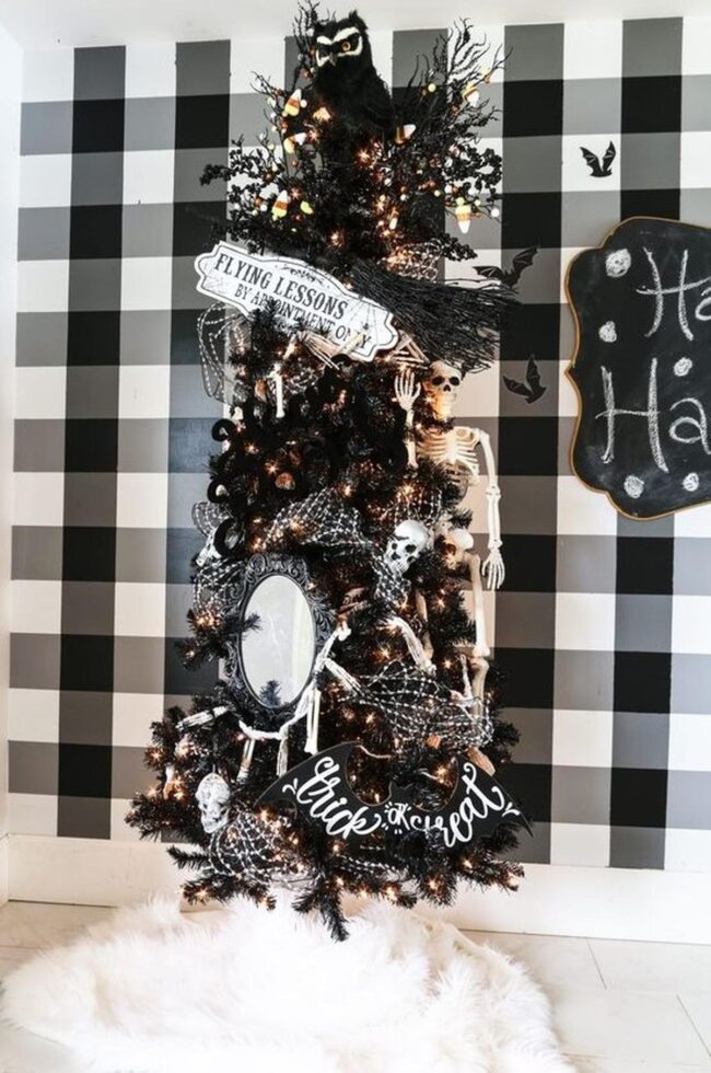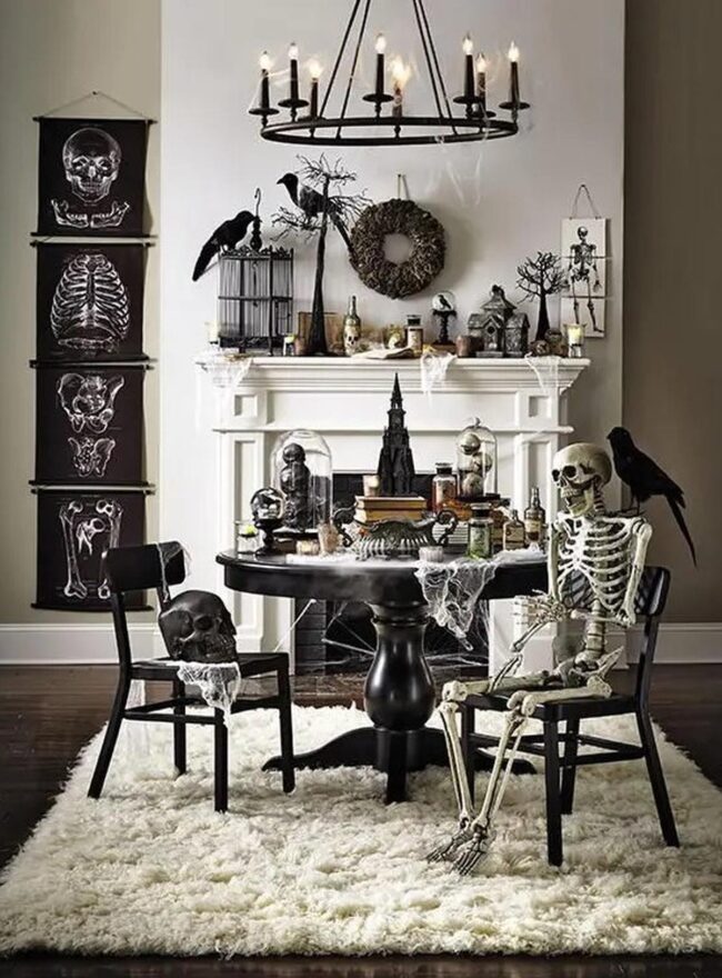 Halloween decor explodes with mysterious magic, drawing you into a world where black and white colors dance dramatically across the room.