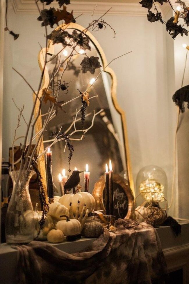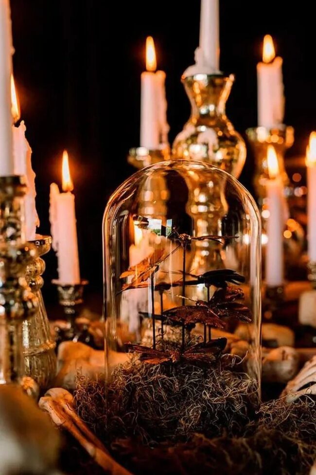 Soft candlelight dancing across carefully arranged elements completes your magical Halloween landscape, making guests want to linger and explore every magical detail.