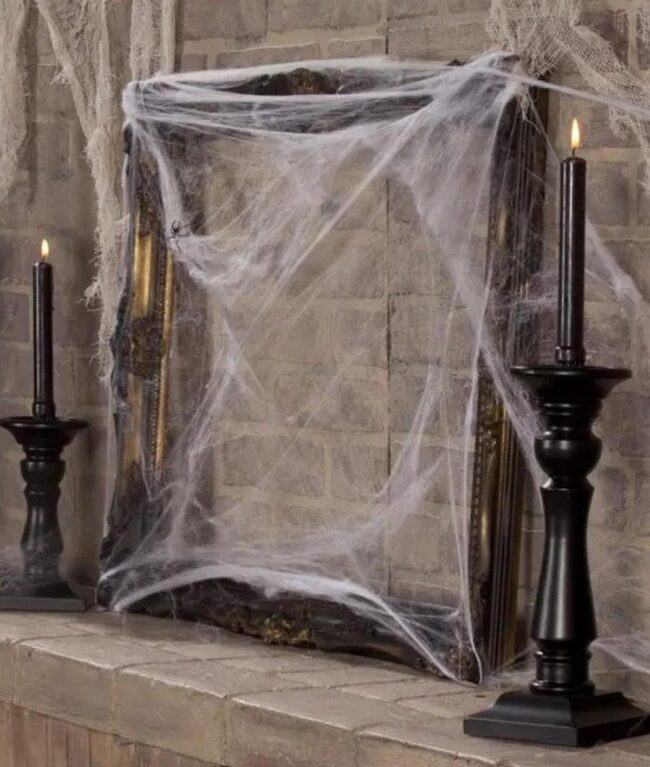 Delicate spider webs cascading over surfaces add ethereal texture that feels both haunting and elegant.