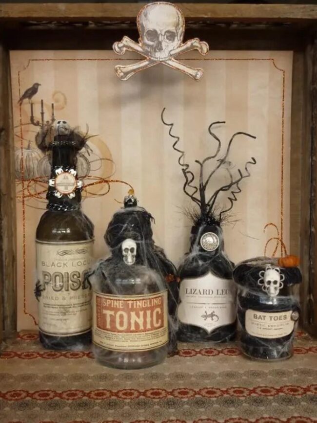 Skeletal displays and vintage poison bottles create an enchanting atmosphere that pulls you into a realm between reality and imagination.