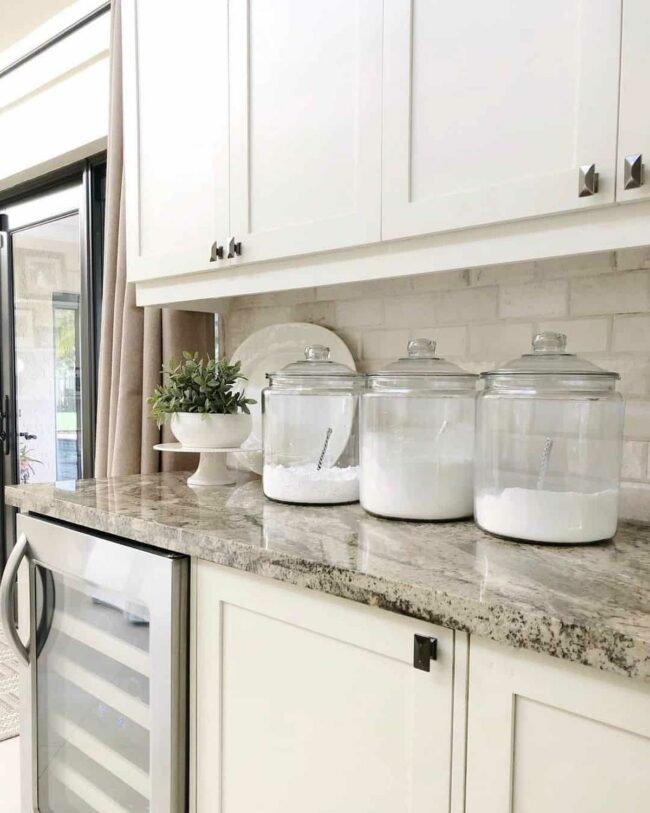 Clear glass containers showcase dry goods, turning pantry staples into beautiful displays that catch the eye.