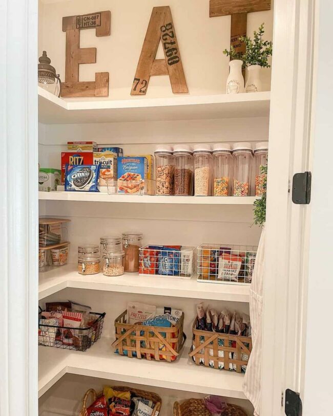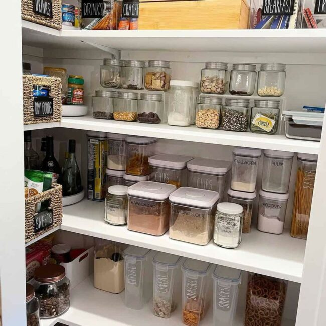 Chalkboard labels elevate pantry organization with a playful, personal touch.