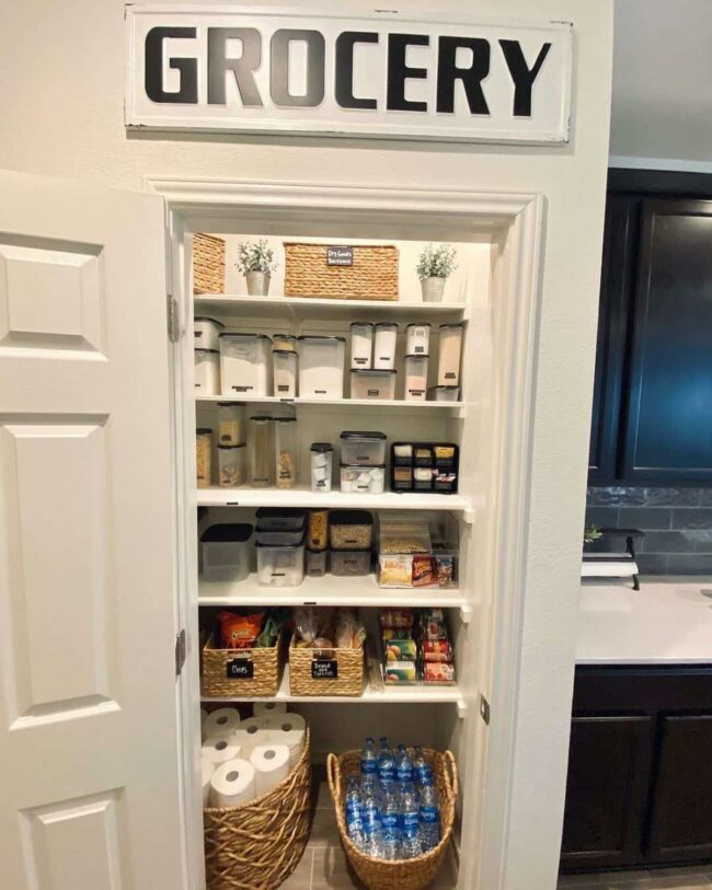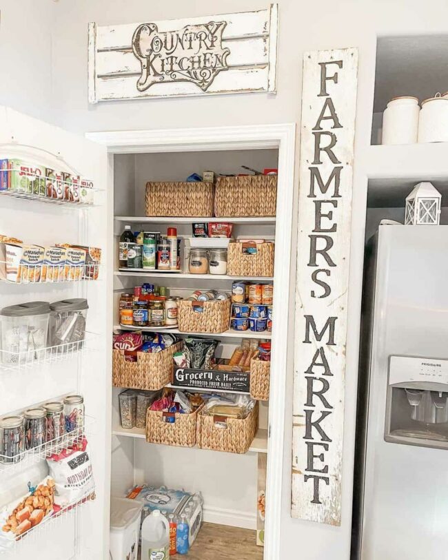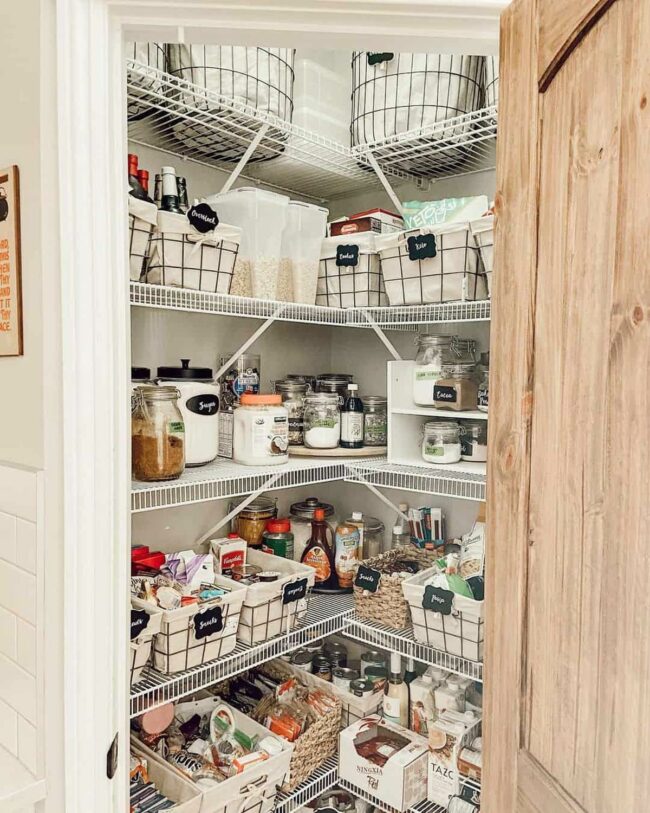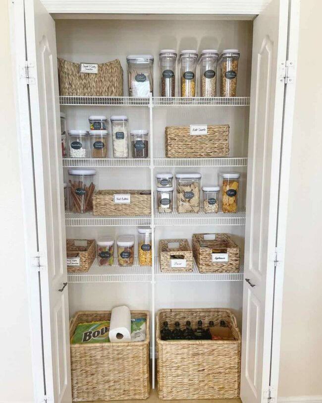 Pantry organization becomes a breeze with strategic basket placement that maximizes space and style.