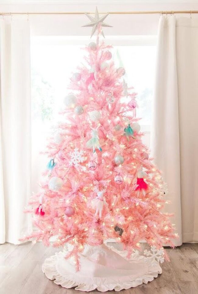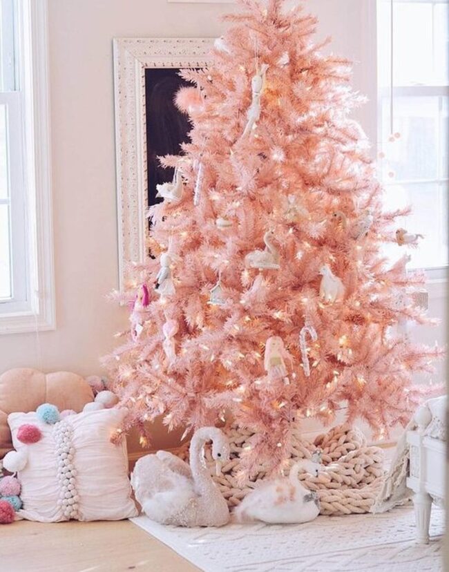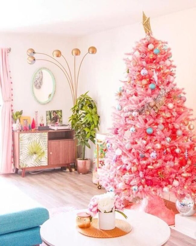 Soft pink Christmas trees burst with unexpected holiday cheer, rebuilding ordinary spaces into magical winter wonderlands that instantly spark joy.