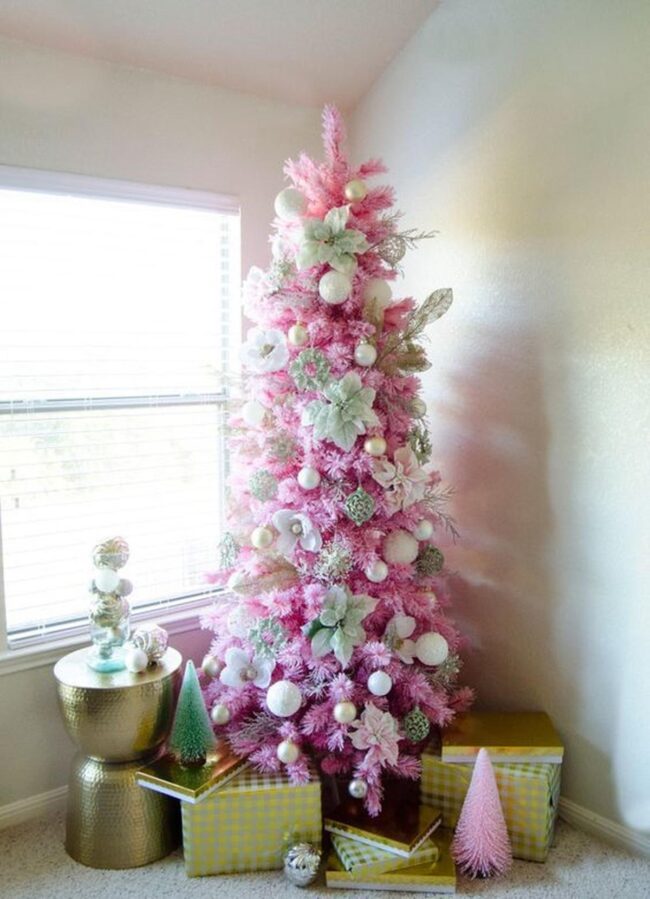 Magical pink Christmas trees burst with personality, inviting everyone into a whimsical holiday wonderland where traditional colors take a delightful detour.