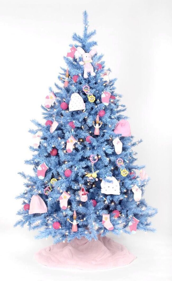 Blue and pink Christmas trees burst with unexpected charm, turning traditional holiday decor into a whimsical wonderland.