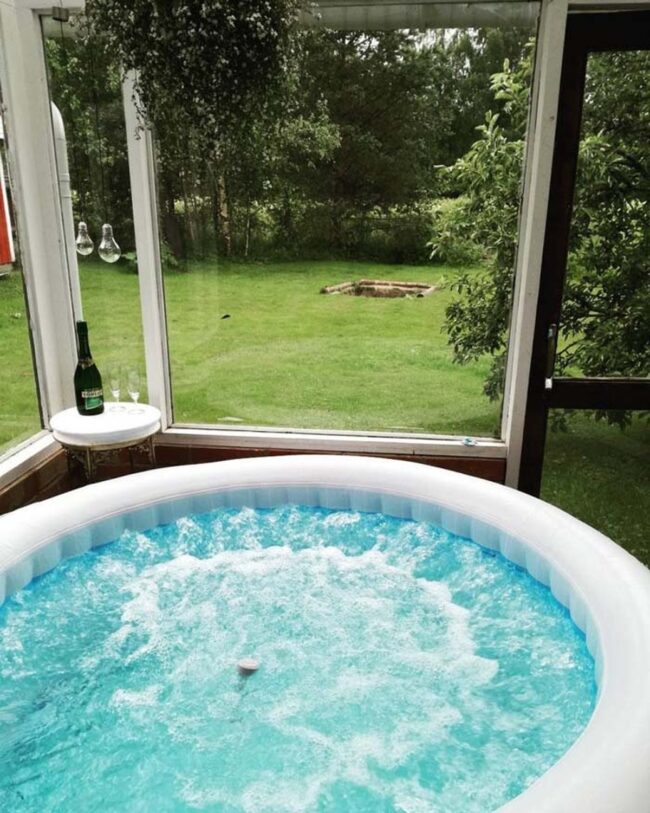 Patio heaters extend enjoyment during cooler evenings, allowing users to soak comfortably in any temperature.