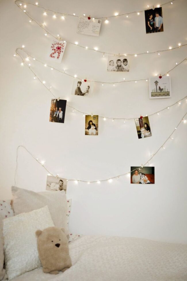 Clothesline photo hangers invite continuous storytelling by letting you easily clip and swap cherished snapshots.