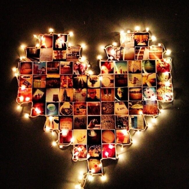 Memories come alive when carefully selected snapshots form meaningful heart-shaped collages, reflecting unique personalities.