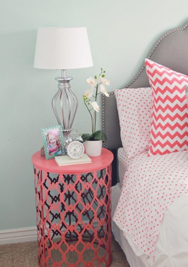 Gray and pastel pink work brilliantly on furniture backs, shelves, and desk legs.