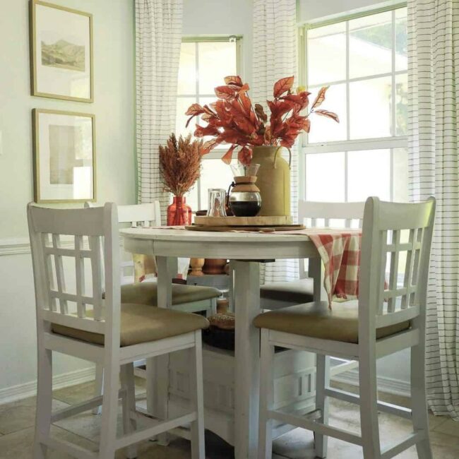 Small decorative details transform an ordinary table into a cozy fall gathering spot.