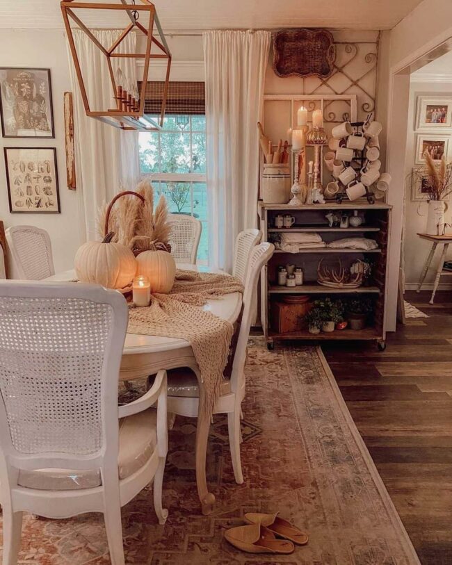 Seasonal touches bring warmth and charm to this inviting dining scene.