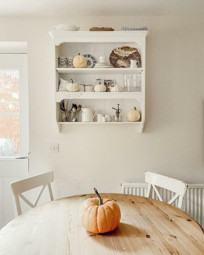 Minimalist styling lets the pumpkin become a statement piece, telling a story of seasonal transition.
