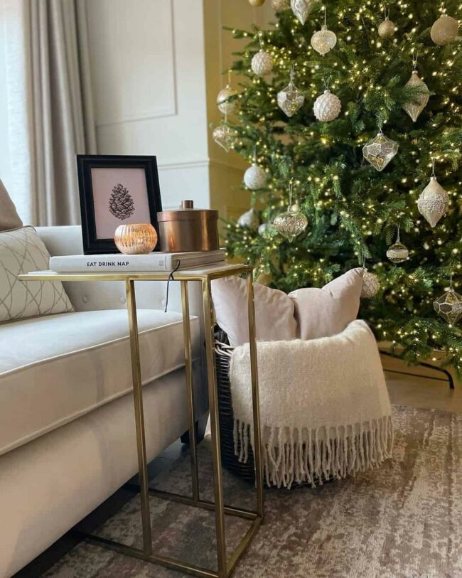 Soft glowing lights highlight each carefully placed ornament and festive detail.