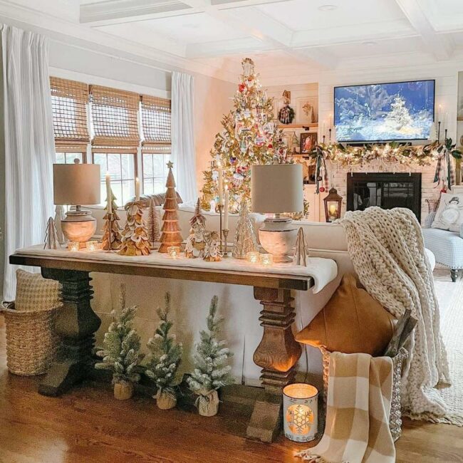 Christmas magic blooms inside this welcoming room where gorgeous decorations capture holiday spirit.