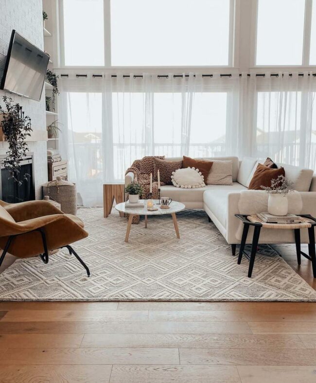 Soft textures and strategic furniture placement make this living space feel like a personal retreat.