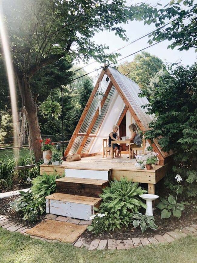 Simple A-frame cabins offer a magical woodland escape nestled perfectly in compact outdoor spaces.