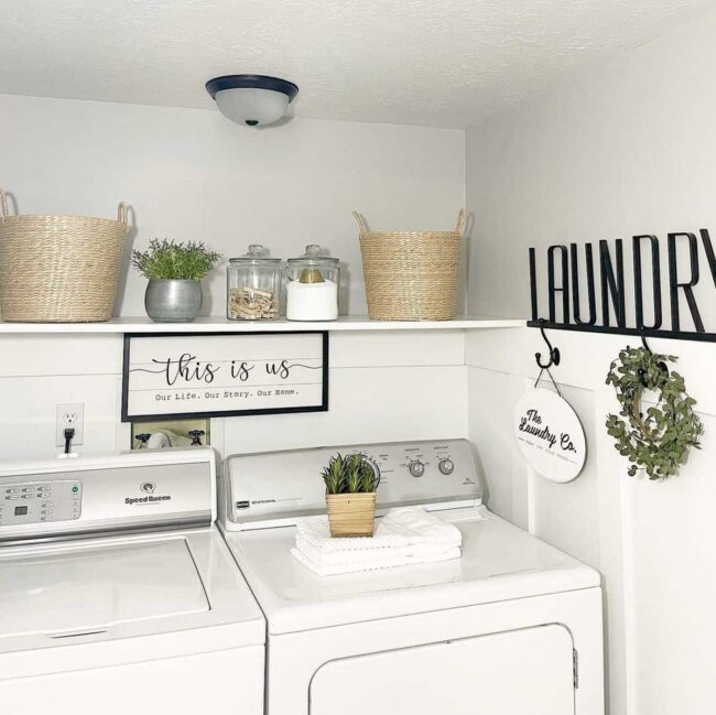 With the right touches, even the smallest laundry room can feel organized and welcoming.