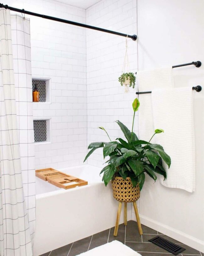 Strategic plant placement brings unexpected vibrancy to bathroom decor.