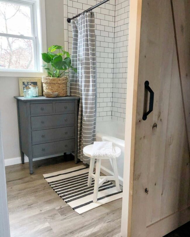 Sliding barn doors instantly elevate farmhouse bathrooms with rustic elegance and charm.