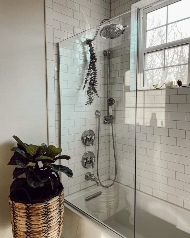 Modern shower designs spark excitement with white subway tiles creating a pristine canvas for stunning visual details.