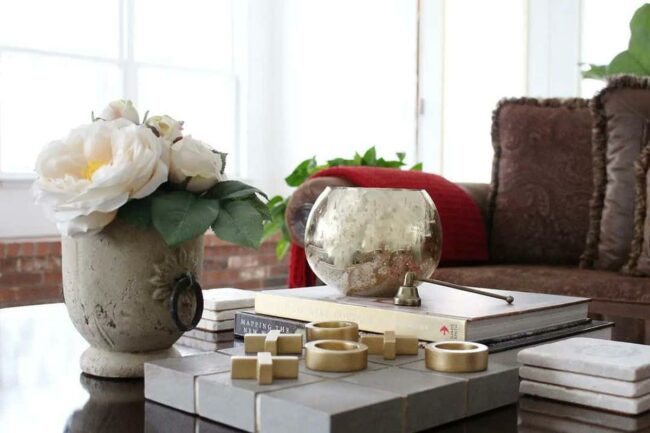 Natural floral accents bring unexpected charm to coffee tables, drawing eyes and inspiring conversation.
