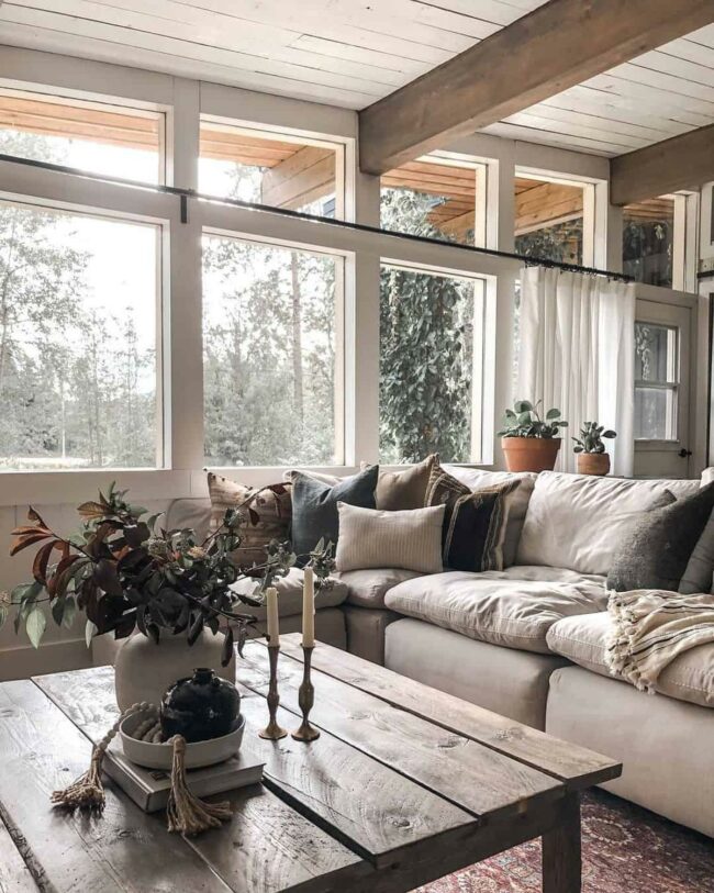 Farmhouse living rooms shine with trestle leg console tables as remarkable centerpieces that instantly command attention.