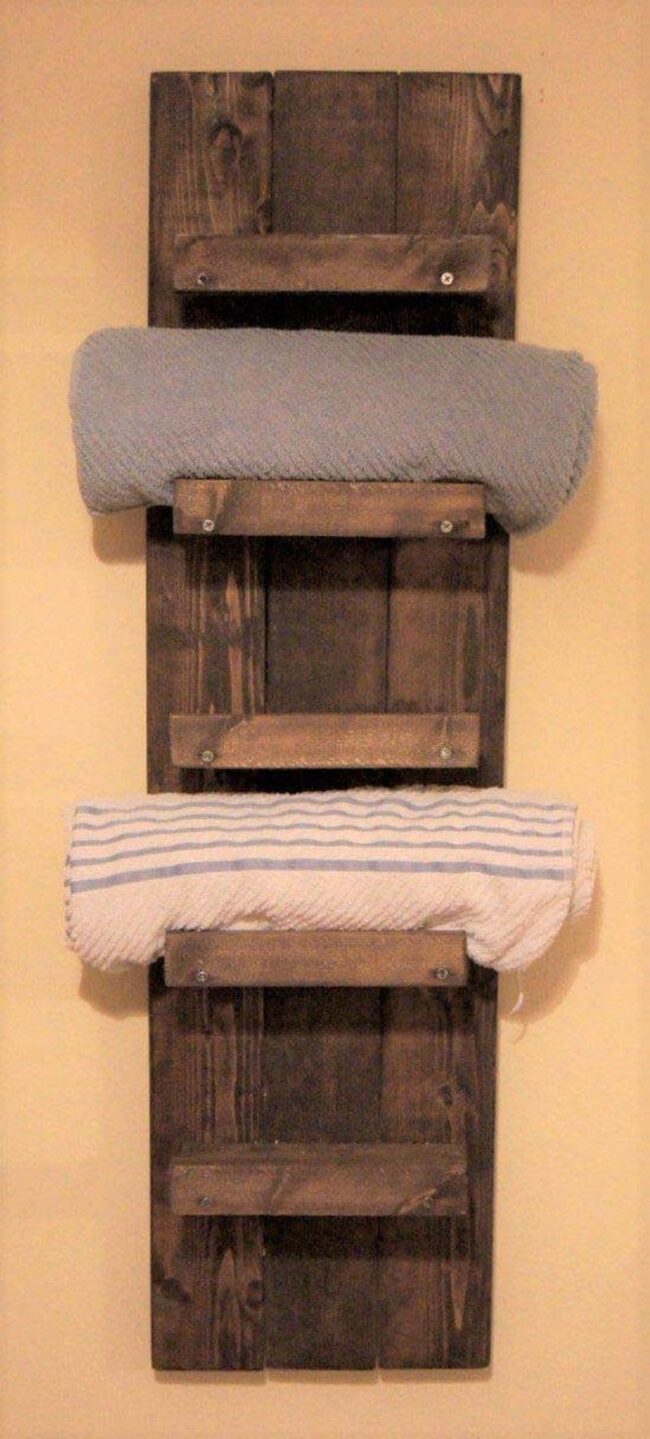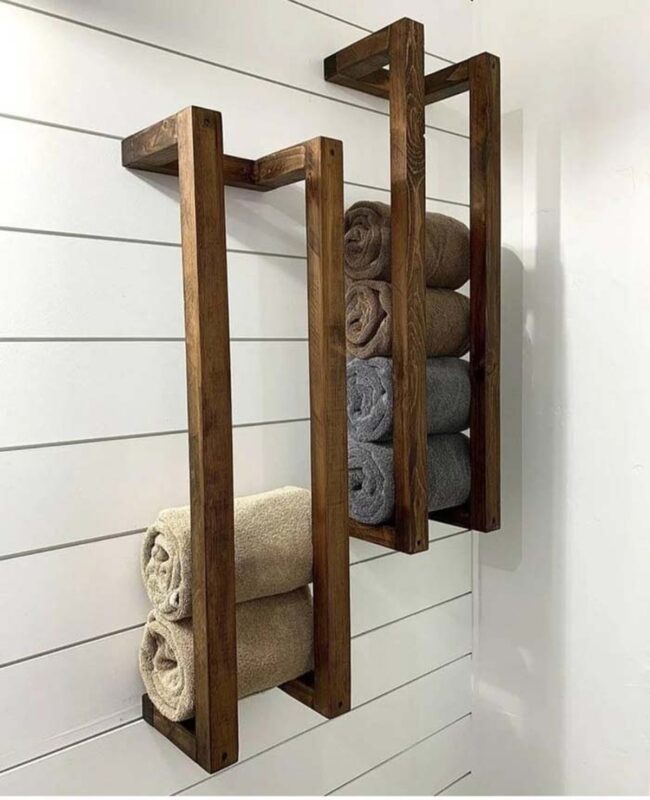 Rustic pallet towel organizers elevate bathroom storage with minimal effort and maximum style.