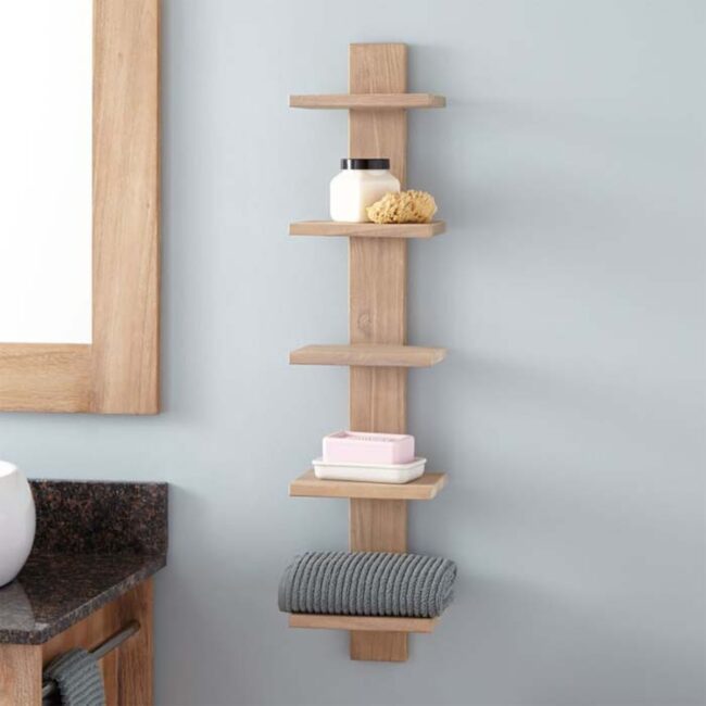 Crafted from durable materials like wood or metal, these clever storage solutions maximize limited space while keeping toiletries neatly accessible.